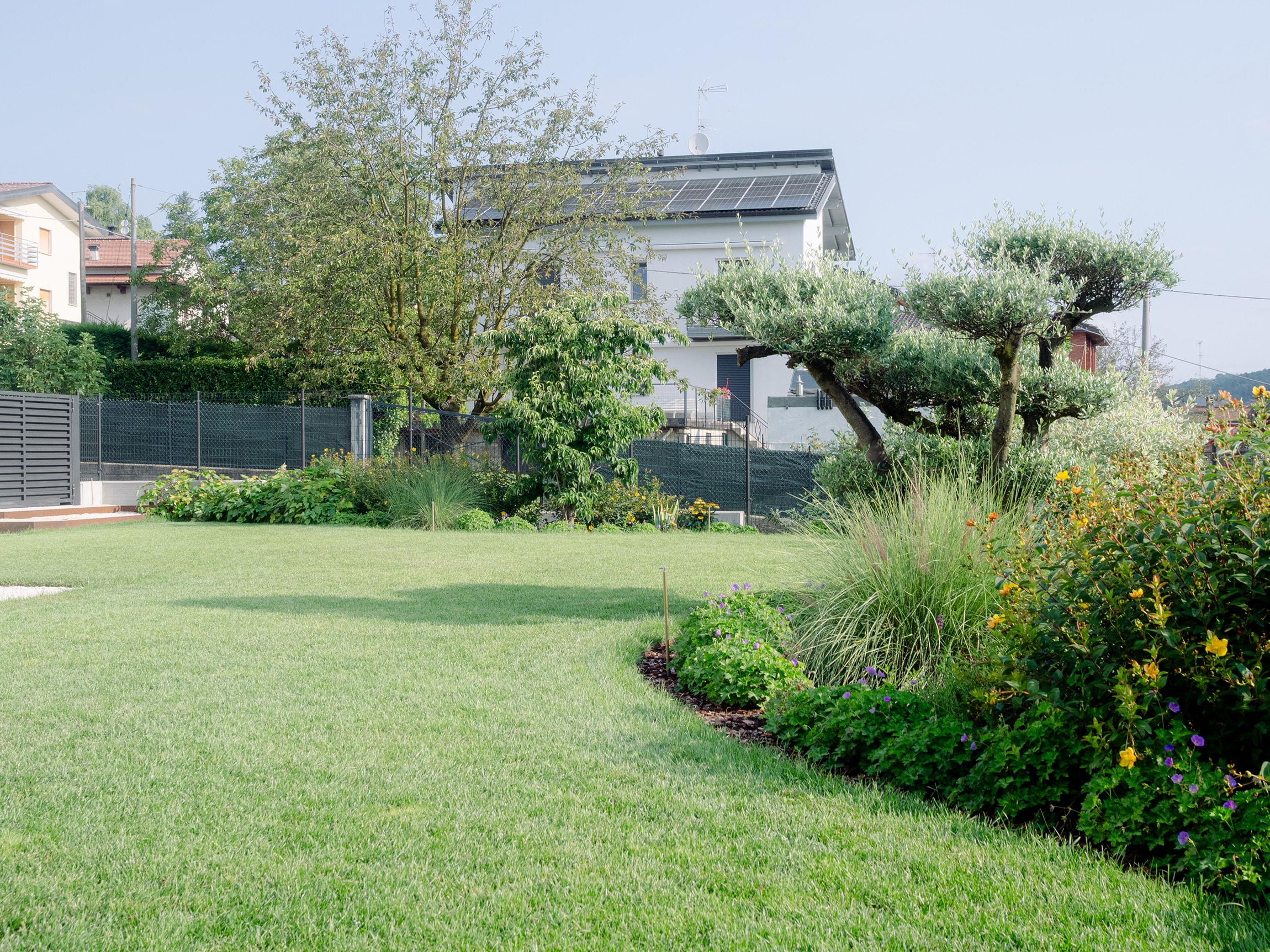 Ghiaie, forme pulite e vegetazione strutturata disegnano un paesaggio ordinato, contemporaneo, da vivere tutto l’anno.